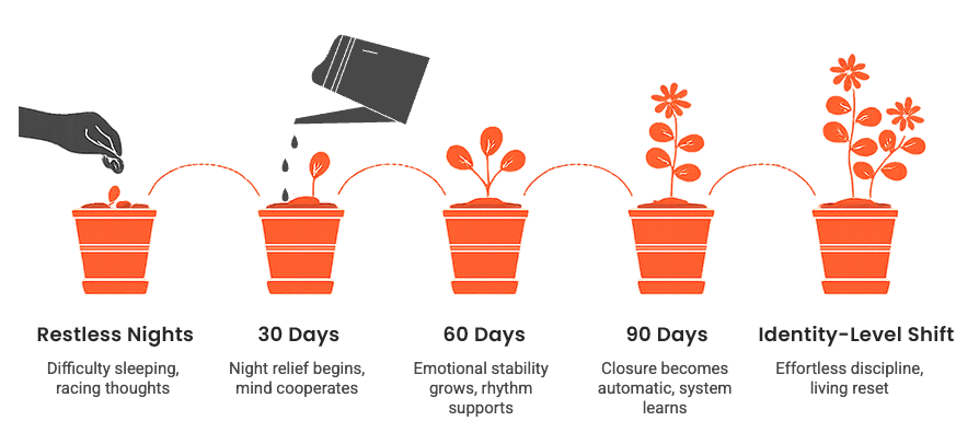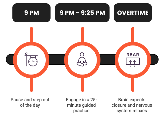 A fixed 9 PM closure system clears mental overload, so stress and unfinished thoughts stop following you to bed.